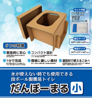 災害時に、水が使えない時でも使用できる段ボール製簡易トイレをオリジナルで作成いたしました。